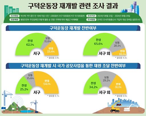 이번 조사는 구덕운동장 재개발에 대한 시민들의 다양한 의견을 수렴해 향후 정책 결정에 반영하기 위해 실시됐다.