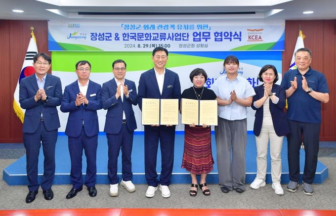 이번 협약은 외국 관광객 유치를 통한 지역경제 활성화와 문화 교류를 목적으로 마련됐다. 협약에 따라 한국문화교류사업단은 올해 장성 황룡강 가을꽃축제에서 중국 공연예술단체 24개 팀 500여 명이 함께하는 광장무 공연을 펼치고, 각종 축제 프로그램에도 참여한다.