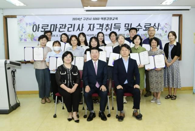 (아름다운교육신문) 구리시는 삼육대학교 평생교육원에서 지난 8월 27일 ‘구리시 5060 역량강화교육 질환별채식요리교육강사’수료식에 이어, 8월 30일 ‘아로마관리사’수료식을 가졌다.