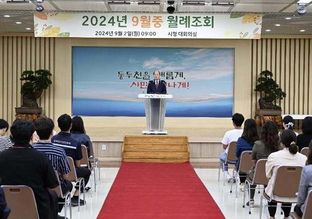 (아름다운교육신문) 동두천시는 2일, 시청 대회의실에서 윤한옥(현 여성단체협의회 회장) 명예시장과 함께 9월 중 직원 월례조회를 개최했다.