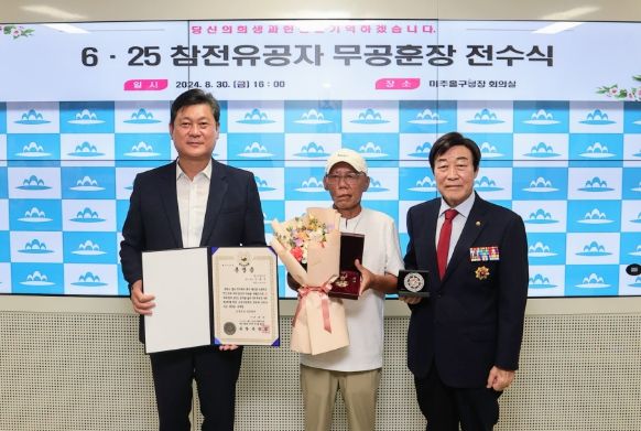 (아름다운교육신문) 인천 미추홀구는 지난 8월 30일 구청장실에서 6·25 전쟁에 참전해 무공을 세운 고(故) 김재선 하사의 유가족에게 국방부 장관을 대신해 화랑무공훈장을 전수했다.