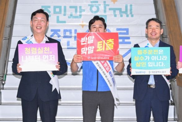 (아름다운교육신문) 대전 중구는 2일 오전 구청사 본관 입구에서 출근하는 직원들을 대상으로 음주운전 사전예방 등 건전하고 청렴한 명절 분위기 조성을 위한 청렴 캠페인을 전개했다고 밝혔다.
