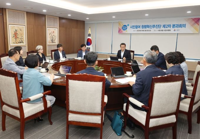 2일 시청 8층 시민사랑방에서 김홍규 강릉시장의 주재로 '시민참여 청렴혁신추진단 분과회의'를 개최하여 부시장 및 국장급 이상 고위공무원과 함께 청렴한 강릉을 만들기 위한 의지를 다지고 조직 내 청렴 문화 조성에 기여하고자 한다.