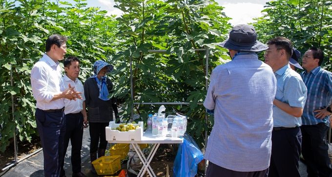 우승희 영암군수와 농업기술센터 관계자 등은 현장에서 연구결과를 활용한 농가 지원방안에 대해서도 이야기를 나눴다.