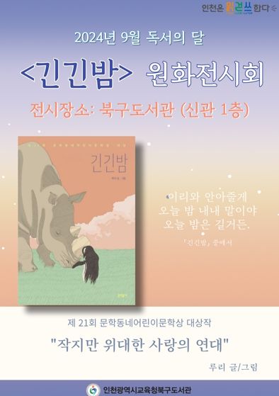(아름다운교육신문) 인천광역시교육청북구도서관은 9월 독서의 달을 맞아 루리 작가의 ‘긴긴밤’ 원화 전시회를 개최한다.