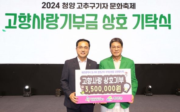 (아름다운교육신문) 대전 동구와 청양군은 지난 8월 30일 2024 청양고추구기자 문화축제 개막식에서 고향사랑기부제 상호기부 기탁식을 개최했다.