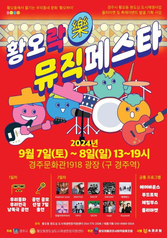 이번 축제는 황오동 원도심 도시재생사업 일환으로 지역예술인들과 주민, 상인이 함께 참여하는 음악 축제로 기획됐다.