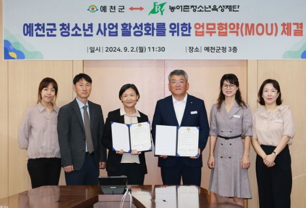 이번 협약은 예천지역 청소년의 건강한 성장을 돕고 다양한 진로 및 문화 체험 기회 제공을 위한 것으로, 양 기관은 농어촌청소년 사업 분야 협력을 강화하기로 했다.
