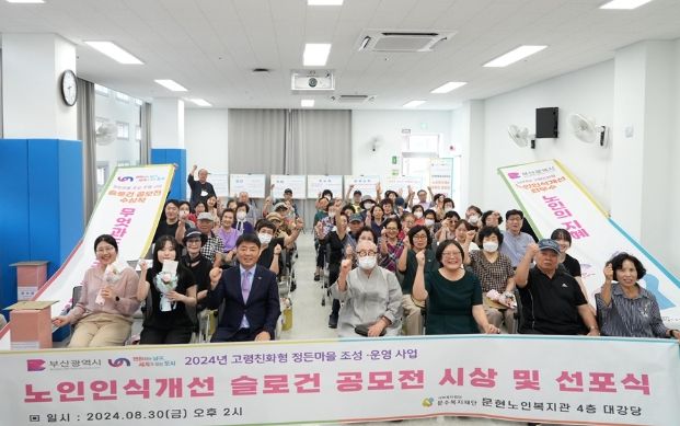 이날 행사는 시 공모사업으로 부산광역시 남구와 문현노인복지관이 함께 추진 중인 '2024년 고령친화형 정든마을 조성·운영사업'의 일환으로 노인친화적 사회분위기 조성을 위해 노인인식개선 슬로건을 공모한 결과 당선작 17개에 대한 시상과 최우수상 수상작에 대한 슬로건 선포식으로 진행됐다.