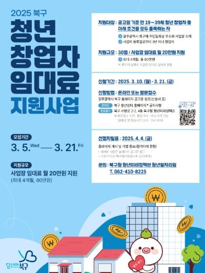 (아름다운교육신문) 광주시 북구가 ‘청년 창업자 임대료 지원사업’ 참여자를 본격적으로 모집한다고 11일 밝혔다.