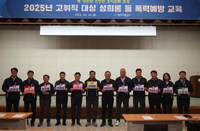 (아름다운교육신문) 광주교통공사는 24일 광주시 서구 마륵동 본사에서 조익문 사장 등 고위직을 포함한 간부 직원 60여명을 대상으로 성희롱 등 폭력 예방 통합교육을 펼쳤다고 밝혔다.