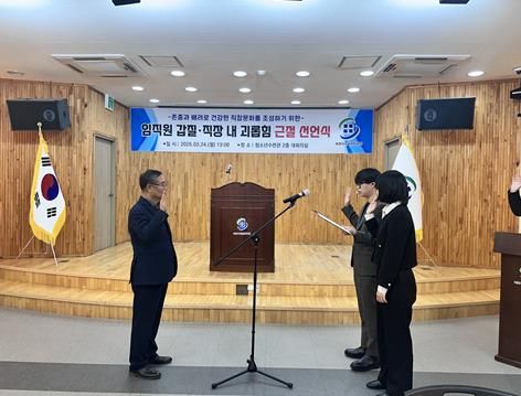 (아름다운교육신문) 속초시시설관리공단은 24일, 건강한 직장문화를 조성하고 갑질과 직장 내 괴롭힘을 근절하기 위한 선언식을 진행했다.