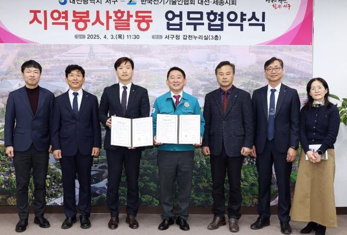 (아름다운교육신문) 대전 서구는 한국전기기술인협회 대전ㆍ세종시회와 취약계층을 대상으로 하는 ‘지역봉사활동 업무협약’을 체결했다고 이달 3일 밝혔다.