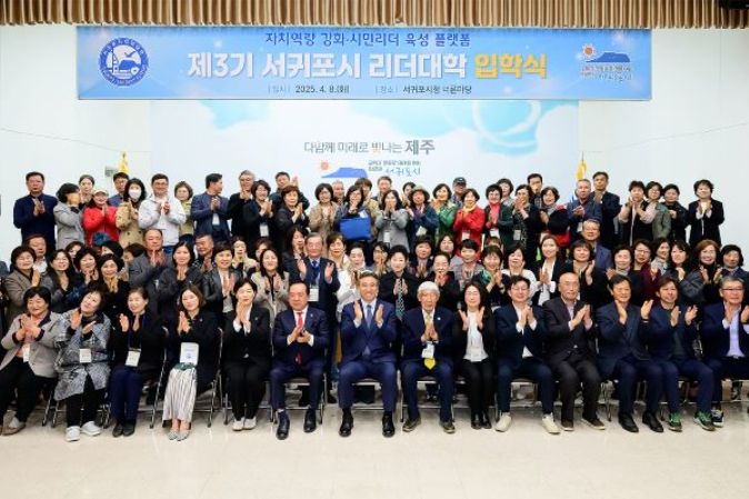 (아름다운교육신문) 서귀포시는 4월 8일 서귀포시청 너른마당에서 입학생 및 관계자 등 140여 명이 참여한 가운데 '제3기 서귀포시 리더대학' 입학식을 성황리에 개최했다.