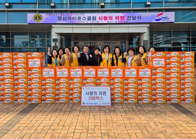 (아름다운교육신문) 국제라이온스협회 355-A(부산)지구 정심라이온스클럽(회장 강동소)은 지난 10일, 부산 동구(구청장 김진홍)에 라면(20개입) 200상자(환가액 300만원 상당)를 기탁했다.