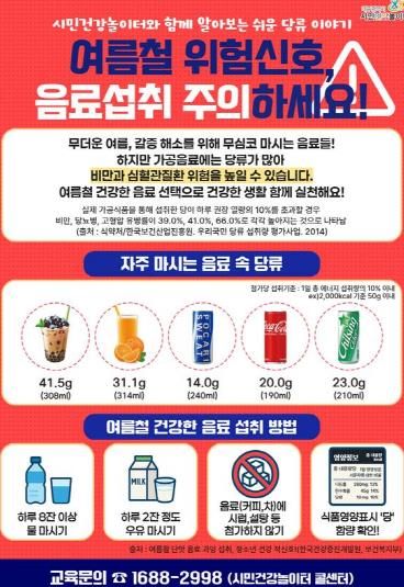 (아름다운교육신문) 대구광역시는 무더위 속 갈증 해소를 위한 고당류 제품 소비가 급증하자, 시민들의 건강을 지키기 위해 당류 과잉 섭취에 따른 건강문제 예방에 나섰다.