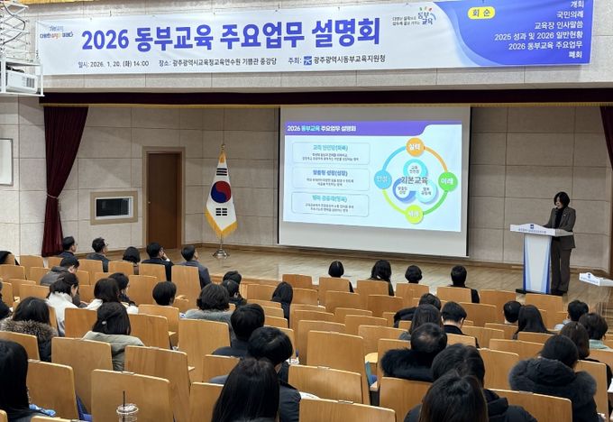 (아름다운교육신문) 광주동부교육지원청은 20일 광주시교육청교육연수원 중강당에서 ‘2026년 동부교육 설명회’를 개최했다.