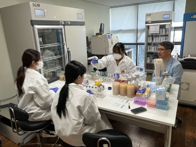 지난 1월, 워터스코리아와 함께한 ‘화장품 분석 장비(LC) 활용 입문 프로그램’에서는 학생들이 직접 표준물질 검량선을 작성하고 성분을 분석해보며 연구개발(R&D) 기초를 다졌다. 이어 김중범 국립순천대학교 교수와 진행한 ‘미생물 시험 기초 교육 캠프’에서는 화장품 품질관리의 핵심인 미생물 한도 시험을 실습하며 현장 적응력을 높였다.