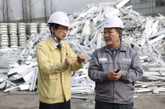 (아름다운교육신문) 조달청은 18일 중동 상황 발생 이후 원자재 가격 변동성이 높아지는 가운데, 알루미늄 제조업체인 하이호경금속㈜(대표 서일수, 전북 군산시 소재)을 방문하여 알루미늄 수급 현황을 점검하고 현장의 목소리를 청취했다.