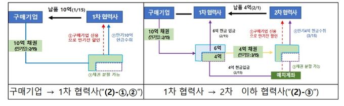 상생결제는 대기업 등 구매기업이 1차 협력사에 지급한 납품대금이 2차 이하 협력사로 안전하게 지급되도록 하는 결제방식으로, 협력사는 결제일에 현금지급을 보장받고, 구매기업의 높은 신용도를 활용해 낮은 금리로 조기 현금화가 가능한 장점도 있다.