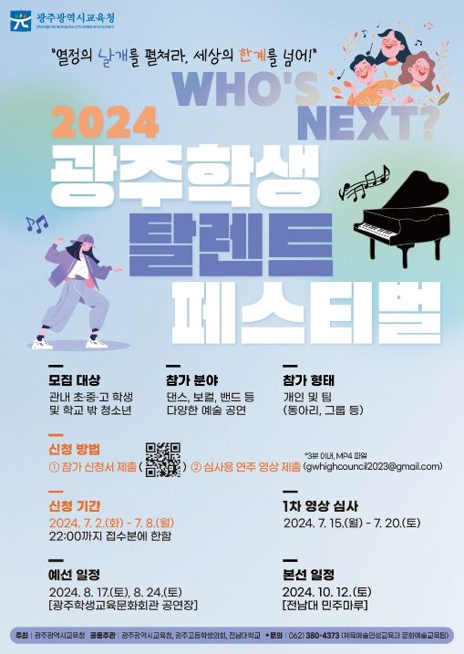 신청은 오는 7월 2일부터 8일 22시까지 구글폼으로 가능하다. 예선(오디션)에 통가한 참가자는 오는 10월 12일 전남대학교 민주마루 무대에서 펼치는 본선에 참가하게 된다.