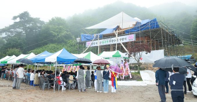 (아름다운교육신문) 함양군은 지난 22일 오전 11시 마천 등구사에서 국가 지정 보물 ‘미륵원’명 청동북 보호·관리를 위한 보호각 건립 공사 상량식이 열렸다고 밝혔다.