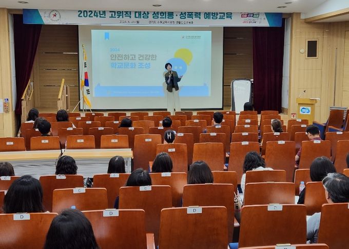 (아름다운교육신문) 경기도수원교육지원청은 6월 24일 경기도인재개발원 신관 다산홀에서 관내 초·중·고·특교 행정실장과 수원교육지원청 직원(총 220명 참석)을 대상으로 ‘2024학년도 고위직(행정실장) 대상 성희롱·성폭력 예방 교육’을 실시했다.