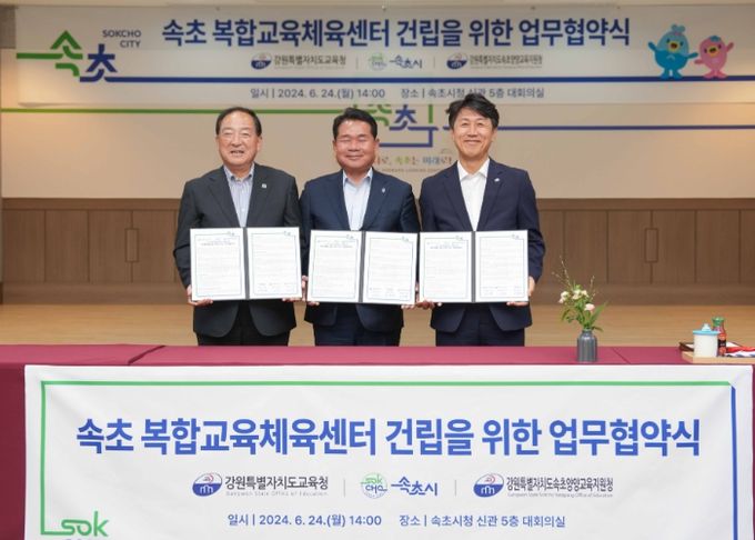 (아름다운교육신문) 강원특별자치도교육청은 24일, 속초시와 ‘(가칭)속초 복합교육센터 건립 공모사업 신청을 위한 업무협약’을 속초시청 대회의실에서 체결했다.