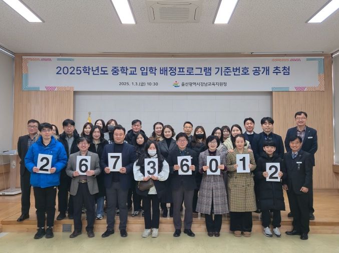 (아름다운교육신문) 울산광역시 강북강남교육지원청은 3일 2025학년도 중학교 배정프로그램 기준번호를 공개 추첨했다.