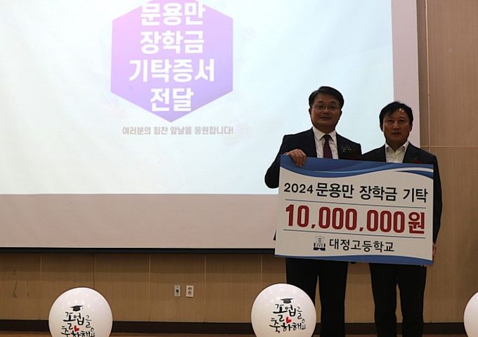 ㈜가이드삼정 대표이사인 문용만 동문은 2019년 1천만 원, 2020년 5백만 원, 2021년 5백만 원, 2022년 1천만 원, 2023년 1천만 원의 장학금을 기탁한 데 이어 이번에도 1천만 원의 장학금을 지원했다.