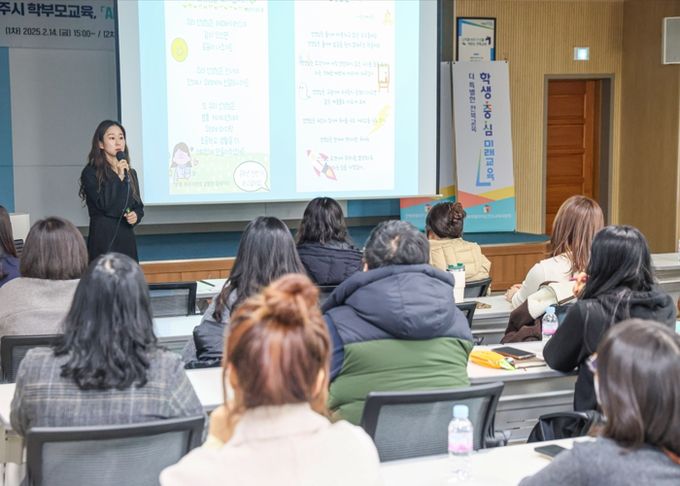 (아름다운교육신문) 전주교육지원청은 14일 3층 대회의실에서 유치원, 초등학교 학부모회와 학교운영위원회 등 학부모를 대상으로 ‘AI 및 스마트기기 활용 수업 이해 연수’ 1차 교육을 개최했다.