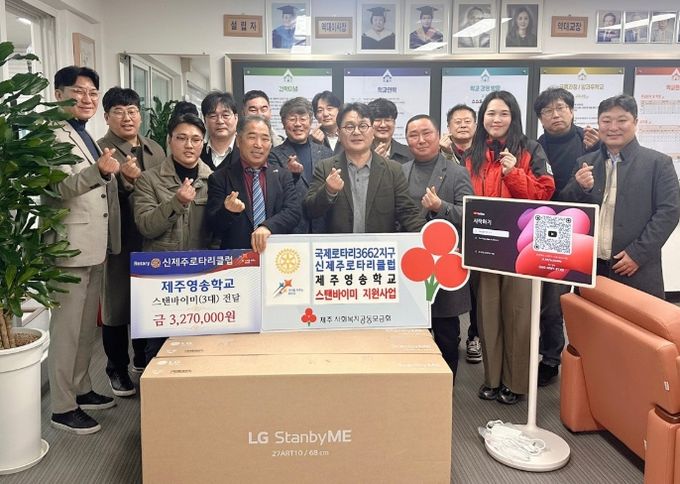 (아름다운교육신문) 국제로타리 3662지구 신제주로타리클럽은 25일 제주도교육청 제주영송학교를 방문해 교육용 기자재(스탠바이미 3대)를 지원했다.