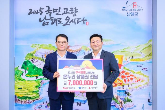 (아름다운교육신문) 남해군은 지난 30일 BNK경남은행 남해지점이 추석 명절을 앞두고 700만원 상당의 온누리상품권을 기탁했다고 밝혔다.