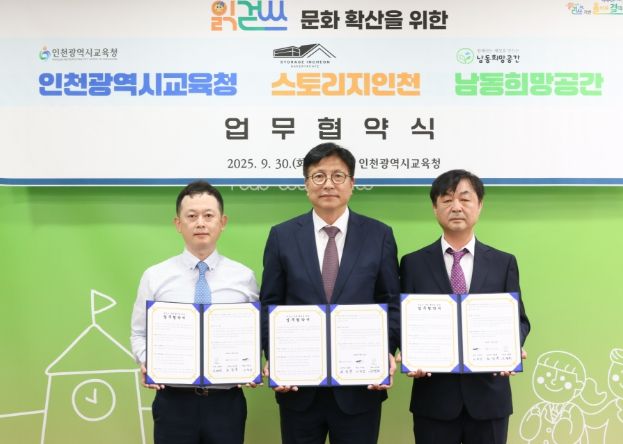 (아름다운교육신문) 인천광역시교육청은 9월 30일 ㈜월미하이랜드(대표 이덕성) 스토리지인천, 남동희망공간(대표 유병희)과 함께 ‘읽걷쓰’ 문화 확산을 위한 업무협약을 체결했다.