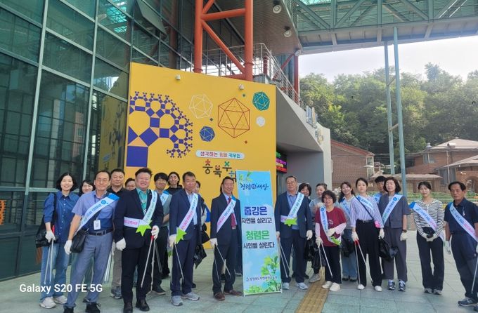 (아름다운교육신문) 충청북도교육청 직속기관 자연과학교육원(원장 지성훈)은 1일, 당산공원에서 10월 직원 소통의 날 행사로 '청렴캠페인 겸 줍킹(Plogging) 환경정화 활동'을 전개한 뒤 오후에는 육거리전통시장을 찾아 명절맞이 장보기 행사에 전 직원이 동참했다.