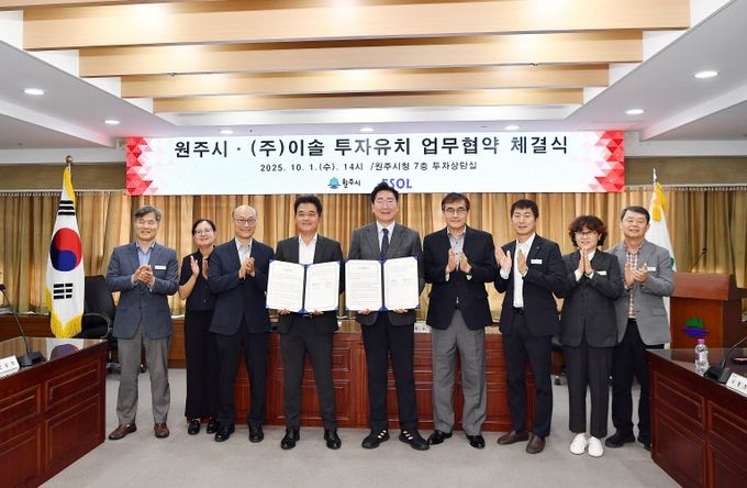 (아름다운교육신문) 원주시는 10월 1일 오후 2시, 시청 7층 투자상담실에서 ㈜이솔(대표 김병국)과 투자유치 협약(MOU)을 체결했다. 이번 협약은 총 505억 원 규모의 투자로, 부론일반산업단지에 소형 방사광가속기와 첨단 EUV 반도체 검사장비 연구·생산시설을 구축하는 사업이다. EUV(Extreme Ultra-Violet)는 반도체 초미세 공정(7nm 이하)에 필수적인 광원이다.