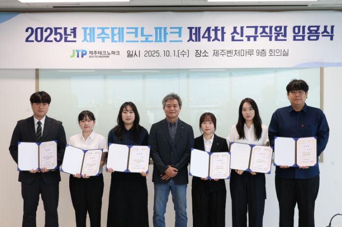 이번 신규직원은 지난 6월 실시된 제주특별자치도 공공기관 통합공채에 따른 채용이다. 제주TP는 통합공채를 통해 기업육성과 바이오, IT 분야, 우주항공, 경영지원 등 제주 주축산업과 미래 신산업 육성에 필요한 지역인재 10명을 모집했다.