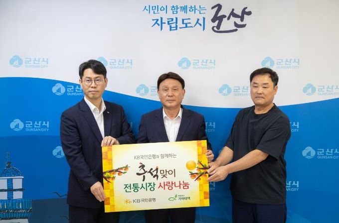 전달식에 참석한 KB군산종합금융센터 서성수 지점장은 “추석 명절을 맞아 경제적 어려움을 겪는 이웃들에게 작은 위로가 되고, 경기침체로 힘든 시기를 보내고 있는 지역 전통시장에도 활력이 되기를 바란다.”라며 “앞으로도 KB국민은행은 나눔문화 확산에 앞장서겠다.”라고 밝혔다.