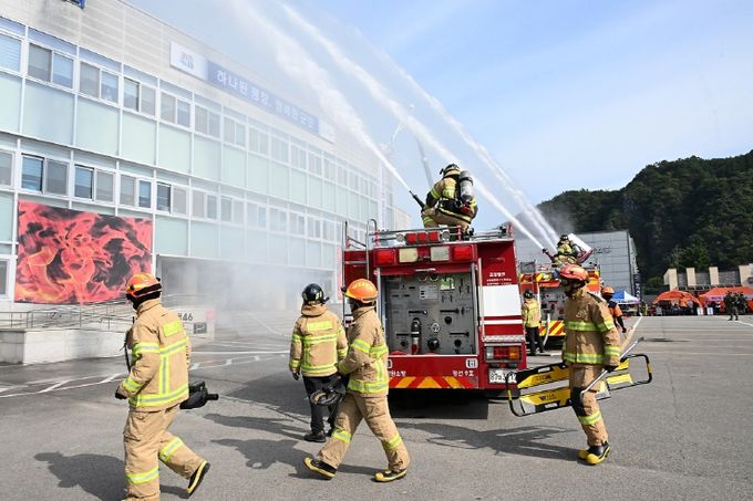 군청 재난안전상황실에서는 재난안전대책본부장인 심재국 평창군수가 주재해 실무부서와 유관기관별 협력·조치 방안에 대해 논의했으며, 현장훈련에서는 자위소방활동과 재난안전통신망(PS-LTE)을 통한 상황 보고·전파, 긴급구조통제단 가동, 통합지원본부 운영 등 재난대응 단계별 사고 수습 체계를 점검하는 데 중점을 뒀다.
