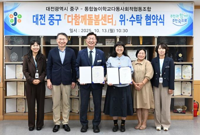 (아름다운교육신문) 대전 중구는 13일 통합놀이학교다동 사회적협동조합(대표 이미라)과 다함께돌봄센터 석교1호점 위수탁 운영협약을 체결했다고 밝혔다.