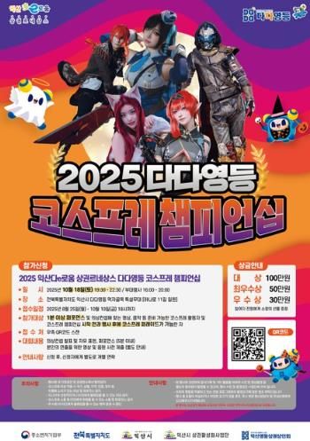 익산시는 오는 18일 영등동 먹자골목(하나로11길 일대)에서 '2025 다다영등 코스프레 대회'를 개최한다고 14일 밝혔다.