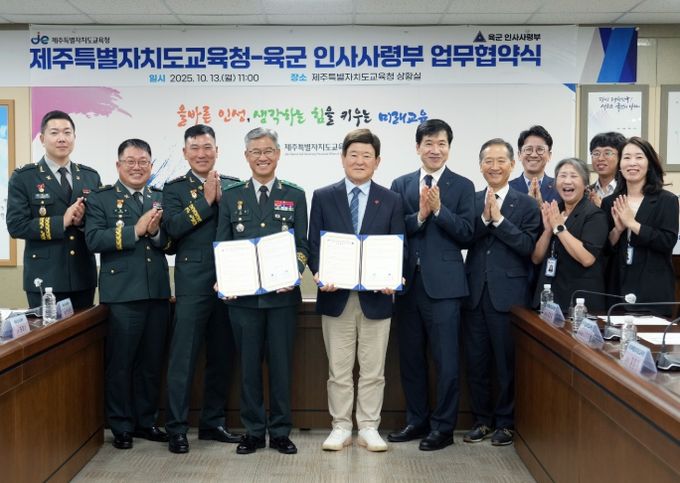 (아름다운교육신문) 제주특별자치도교육청은 13일 도교육청 상황실에서 육군 인사사령부와 고등학생들의 진로 탐색 기회 확대를 위한 업무협약을 체결했다.