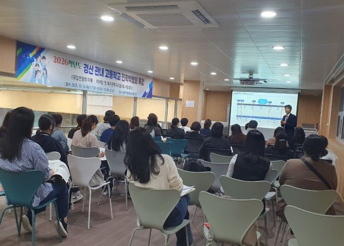 (아름다운교육신문) 경상북도경산교육지원청은 2025년 10월 14일 남부미래교육관에서 ‘2026학년도 경산 관내 고등학교 진학박람회’를 성황리에 개최했다. 이번 행사에는 중학교 3학년 학생과 학부모 등 200여 명이 참석해 높은 관심을 보였다.