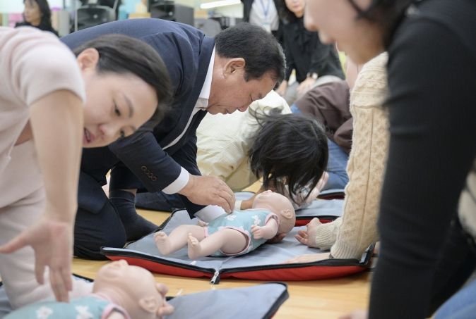 (아름다운교육신문) 최민호 세종특별자치시장이 21일 종촌동 육아종합지원센터에서 ‘찾아가는 현장소통’을 열고 영유아 학부모 40여 명과 함께 심폐소생술을 재숙지하고 응급대처의 중요성을 공유했다.