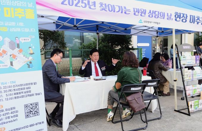 이 구청장은 “주민의 목소리가 행정의 방향을 잡는 길잡이가 된다.”라며, “‘찾아가는 민원 상담의 날, 현장 미추홀’을 통해 구민의 불편을 해결하고 더 나은 미추홀을 만들어 가겠다.”라고 말했다.