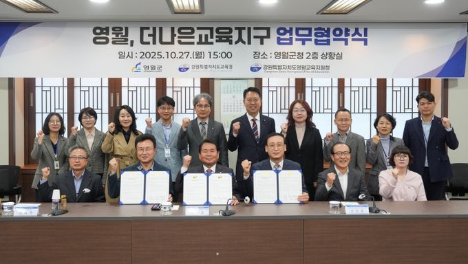 (아름다운교육신문) 강원특별자치도교육청은 영월군청(군수 최명서), 영월교육지원청과 10월 27일 영월군청에서 ‘영월 더나은교육지구 연장지정 업무협약’을 체결했다.