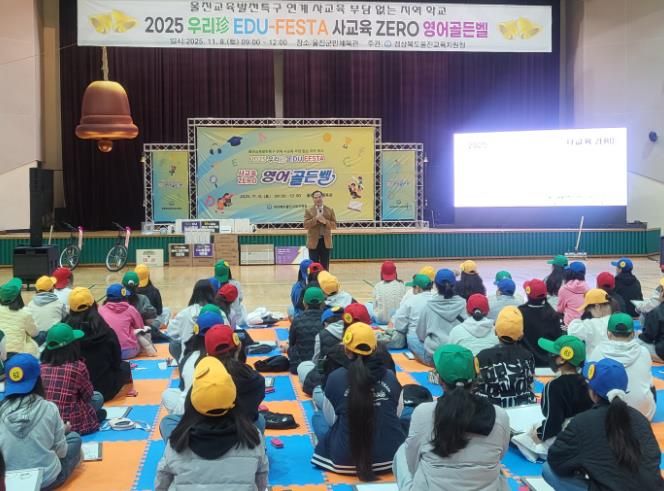 (아름다운교육신문) 울진교육지원청은 11월 8일 오전 9시, 울진군민체육관에서 울진 관내 초등학생 5~6학년 100여명을 대상으로 '2025 우리珍 에듀 페스타 ‘사교육 ZERO 영어골든벨’'을 개최했다.