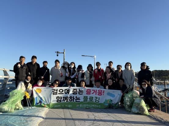 (아름다운교육신문) 울산교육연수원은 지난 11일 북구 정자동 일대에서 ‘걸으며 줍는 즐거움! 함께하는 쓰담 달리기(플로깅)’를 주제로 환경 정화 활동을 했다.