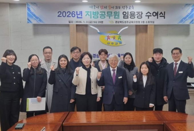 (아름다운교육신문) 성주교육지원청은 2026년 1월 2일 청사 내 소회의실에서 지방공무원 전입자 및 신규 임용자를 대상으로 임용장 수여식을 개최했다.