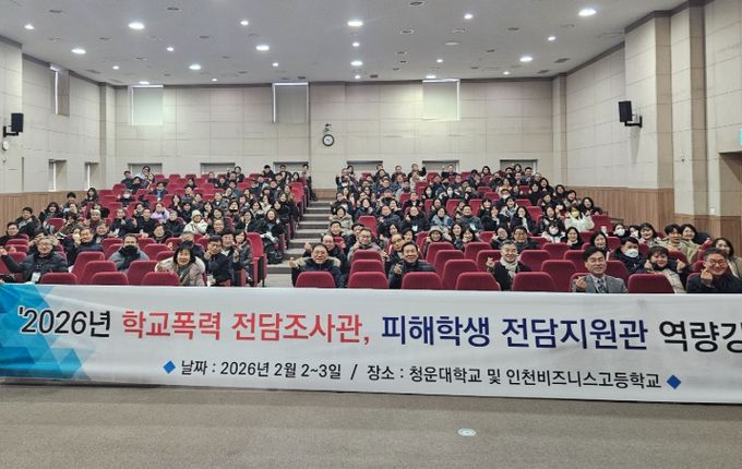 (아름다운교육신문) 인천광역시교육청은 지난 2일부터 이틀간 청운대학교와 인천비즈니스고등학교에서 ‘2026년 학교폭력 전담조사관 역량 강화 연수’를 실시하고, ‘학교폭력 보안관’ 운영 준비를 마쳤다.